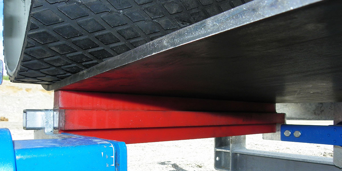 - sponde laterali di contenimento realizzata in elementi modulari, bullonati fra loro ed al traliccio del nastro, completi di bavetta in gomma regolabile in altezza.